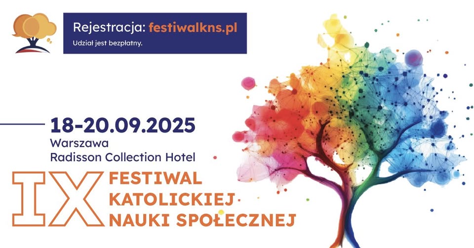 Zapraszamy do udziału w IX Festiwalu Katolickiej Nauki Społecznej, który odbędzie się w dniach 18-20 września 2025 r. w Warszawie.