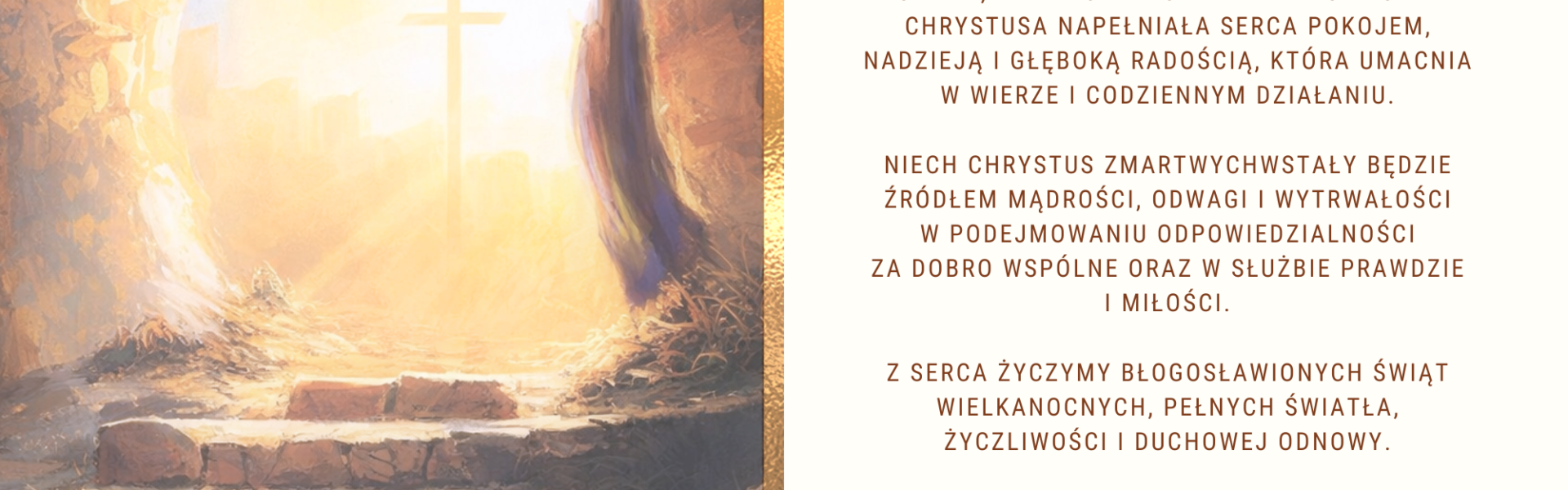 Życzymy, aby czas Świąt Wielkanocnych był okresem duchowego umocnienia, radości oraz nadziei płynącej z prawdy o zwycięstwie życia nad śmiercią.