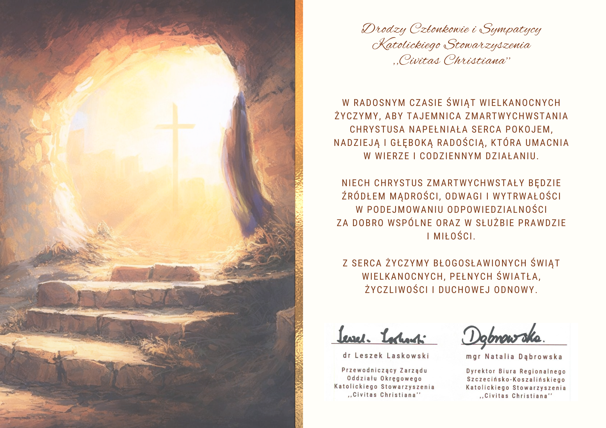 Z okazji Świąt Zmartwychwstania Pańskiego składamy wszystkim Członkom, Sympatykom oraz Przyjaciołom Katolickiego Stowarzyszenia „Civitas Christiana” najserdeczniejsze życzenia.