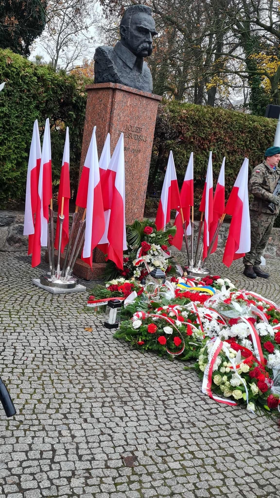 Przy popiersiu Marszałka Józefa Piłsudskiego złożyliśmy kwiaty i zapaliliśmy znicz, oddając hołd tym, którzy walczyli o wolną Polskę.